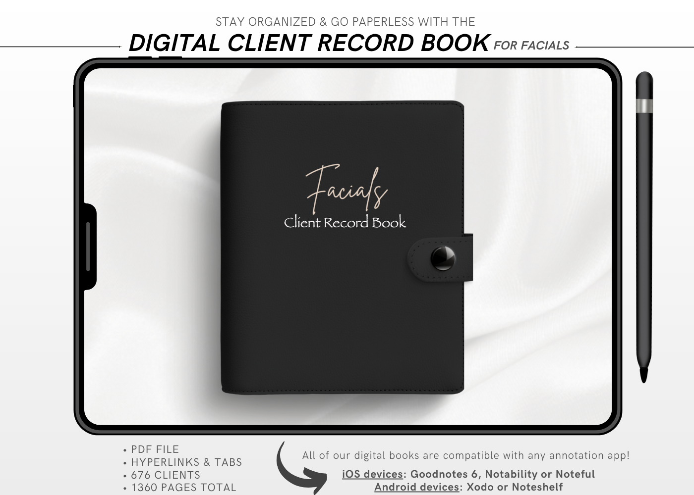 Stay organized, go paperless and track your client's services with our new simple Digital Facials Client Record Book!